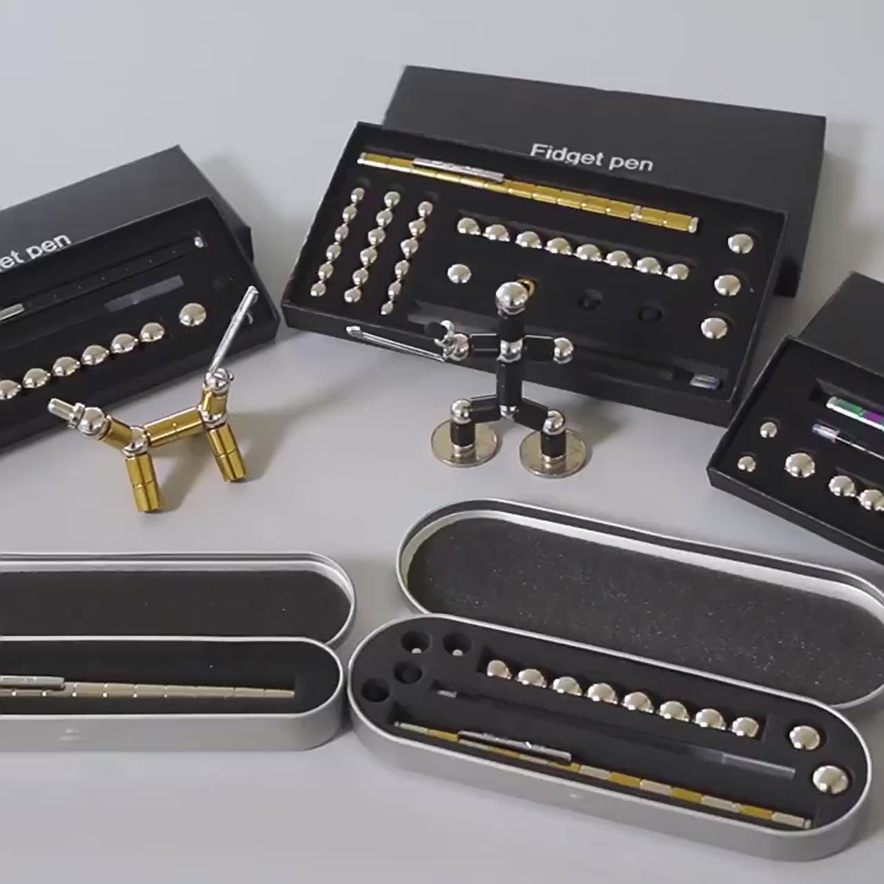 This premium magnetic pen transforms into endless shapes, sculptures, tools, and fidget creations — all while being a fully functional writing instrument.